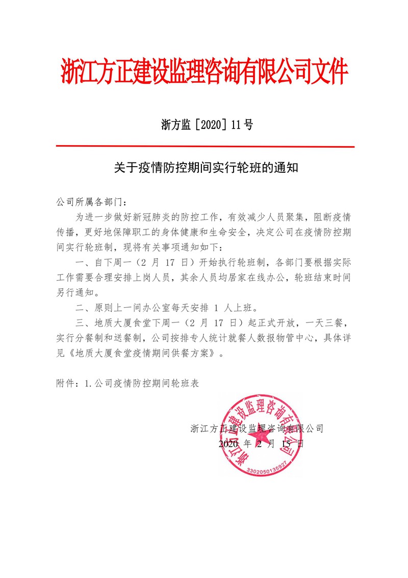 關(guān)于疫情防控期間實(shí)行輪班的通知